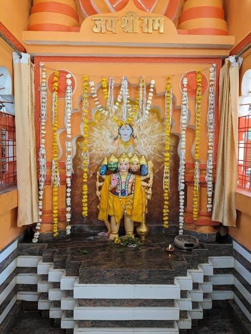 Recitation of the Hanuman Chalisa is deeply interwoven with various spiritual practices aimed at fostering devotion, strength, and liberation. Many devotees engage in daily chanting, often at sunrise or sunset, believing it cultivates inner peace and removes obstacles. Utilizing a Hanuman Chalisa PDF in Sanskrit enhances these practices by allowing for accurate pronunciation and a deeper connection to the verses’ original energy.